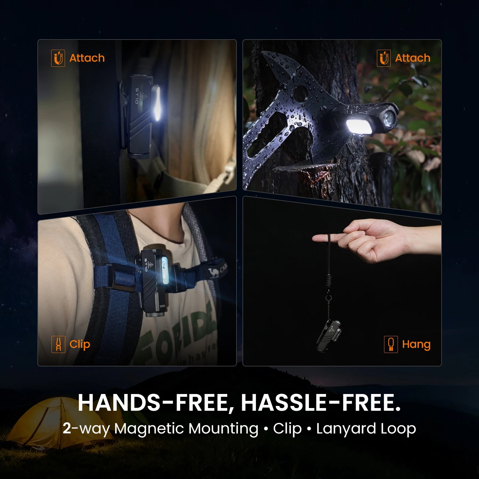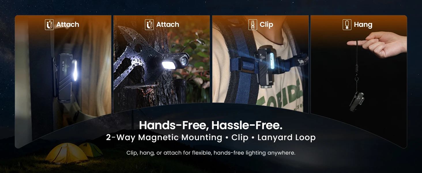 ST10 is a compact and versatile EDC flashlight featuring a white main light, white side light, and red side light, Super bright 1000-lumen main beam for distance, side white light for close-up tasks, plus a red light 660NM to protect your night vision—perfect for fishing, night walks, reading.lt comes with a magnetic tail cap and magnetic clip for flexible use in various scenarios. Two separate buttons control the main and side lights for easy operation.