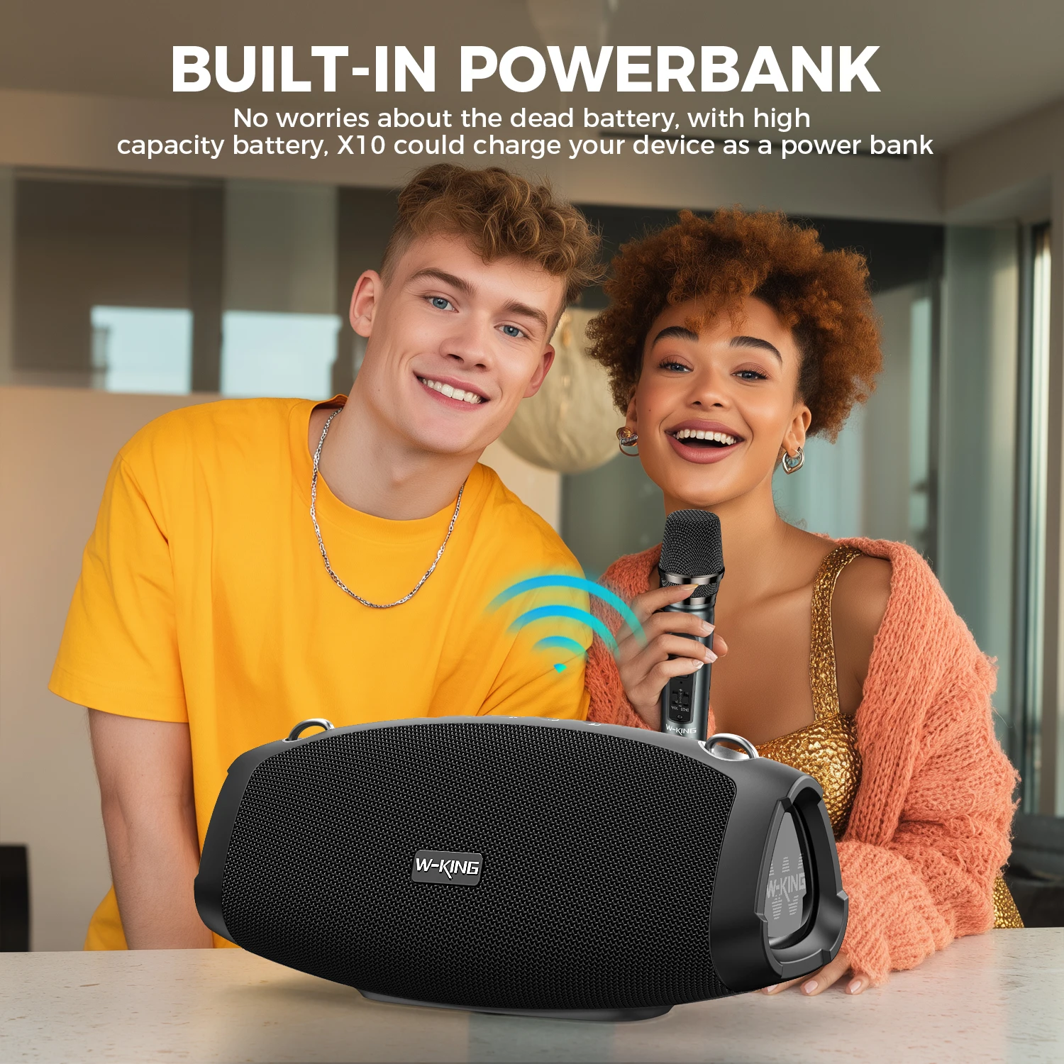 W-KING (120W PEAK)70W Portable Loud Bluetooth Speakers with Wireless Microphone, Waterproof Outdoor Wireless Bluetooth