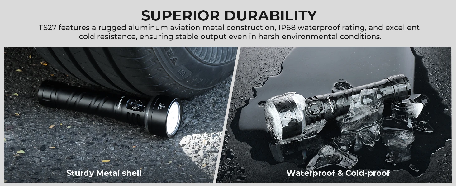 Wurkkos TS27 Ultra-Bright Flashlight 3200 Lumens 845-Meter Beam Distance Camping-Specific Rechargeable Flashlight